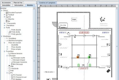 - Créer facilement votre plan de feux avec en arrière-plan le plan de la salle